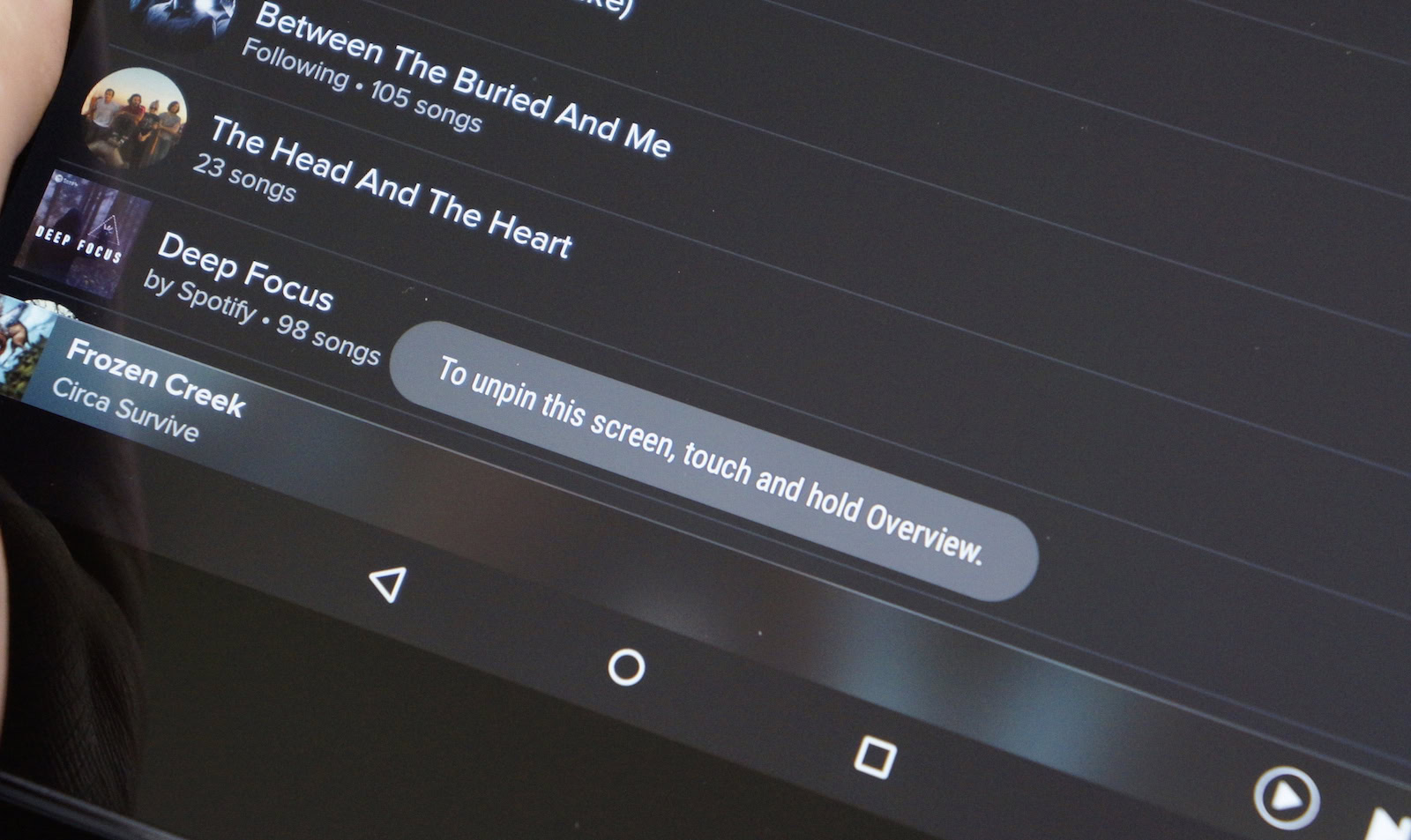 Screen pinning is a characteristic introduced with Android v.0 Lollipop, and is useful if you're giving your tablet to someone who wants to ane specific thing. For example, yous can lock the tablet to a specific app or game, with the device requiring your unlock pin or blueprint to access anything else on information technology.
